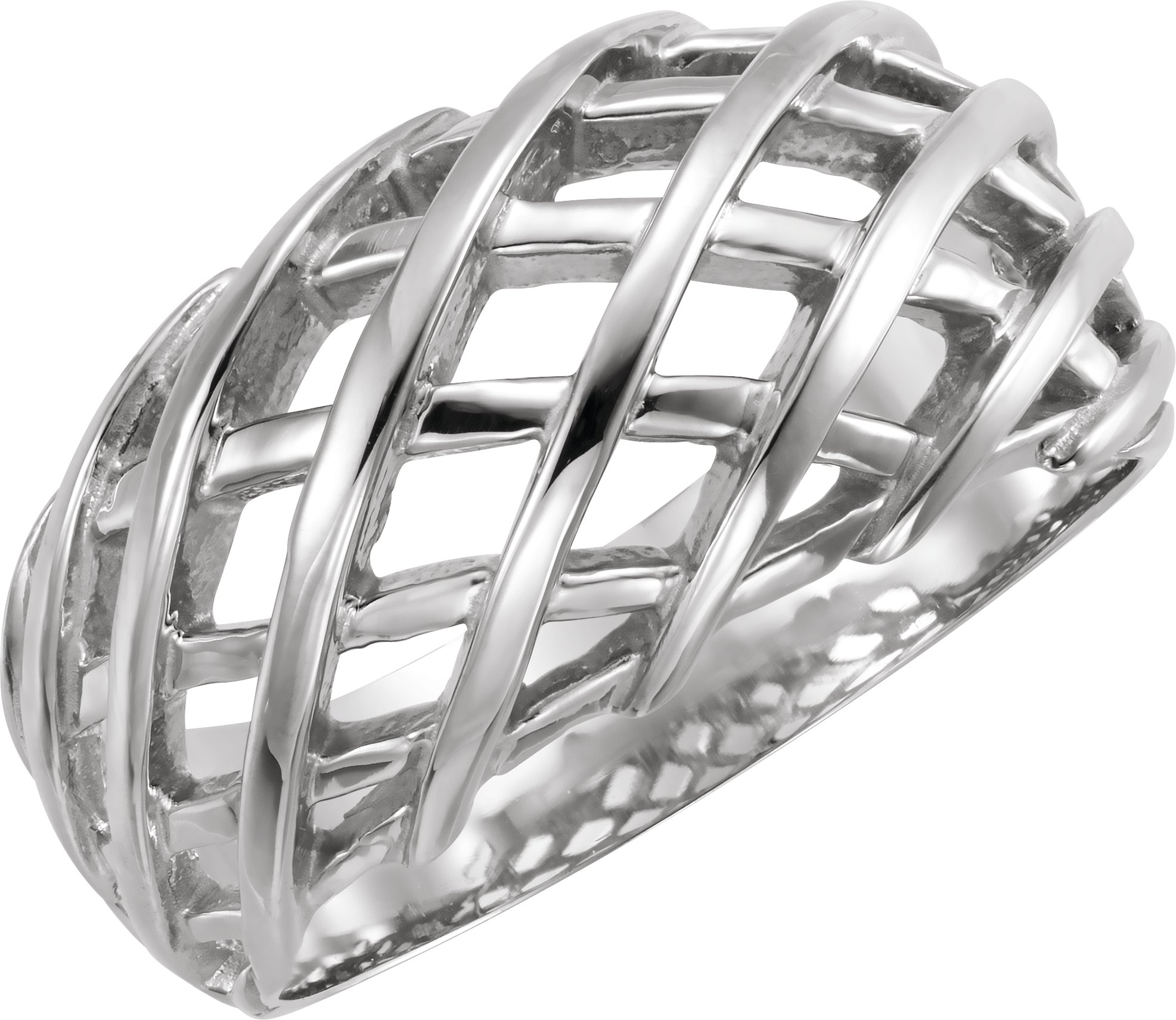 14K White 11 mm Latticework Dome Ring
