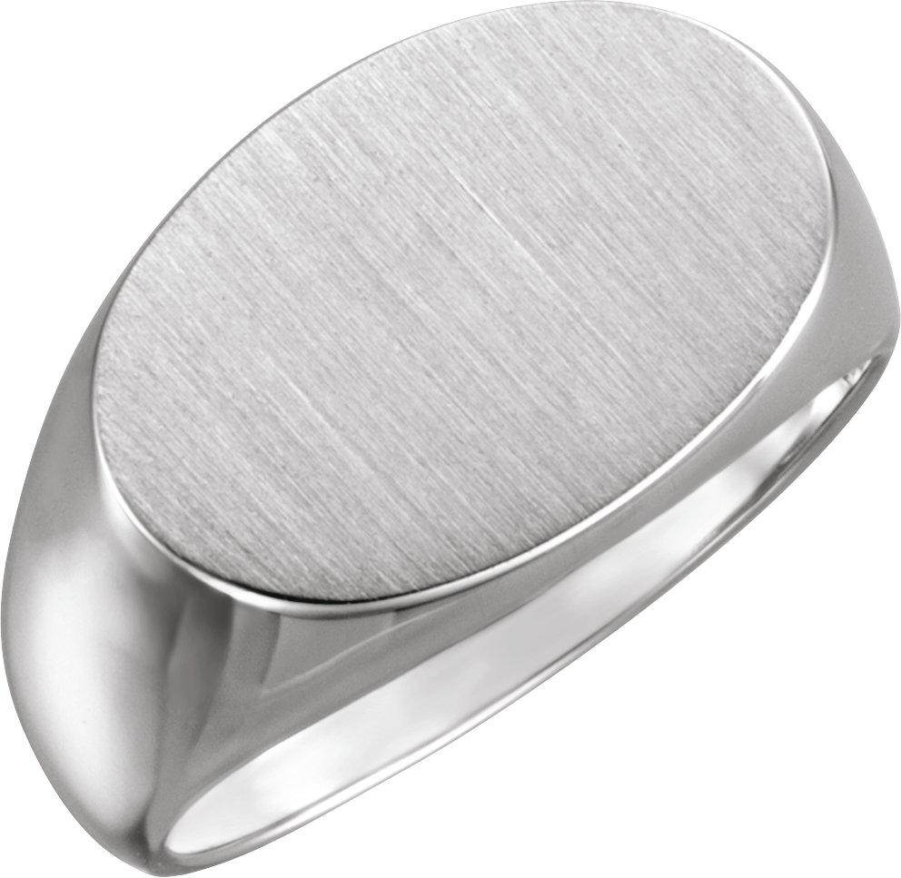 9121 / 14K White / 18 X 12 Mm / Brush Finished Top / Polished / Signet Ring