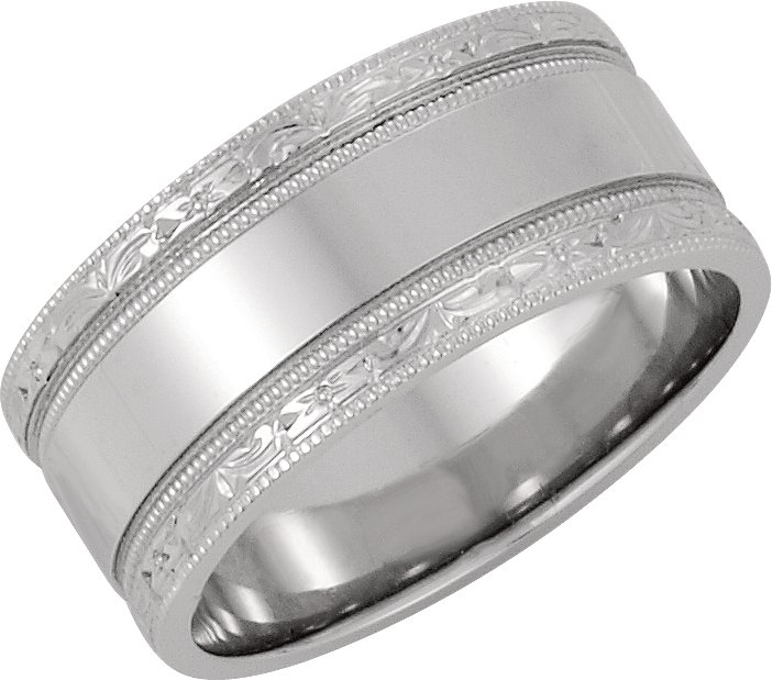 14K White 8.5 mm Design-Engraved Band Size 4