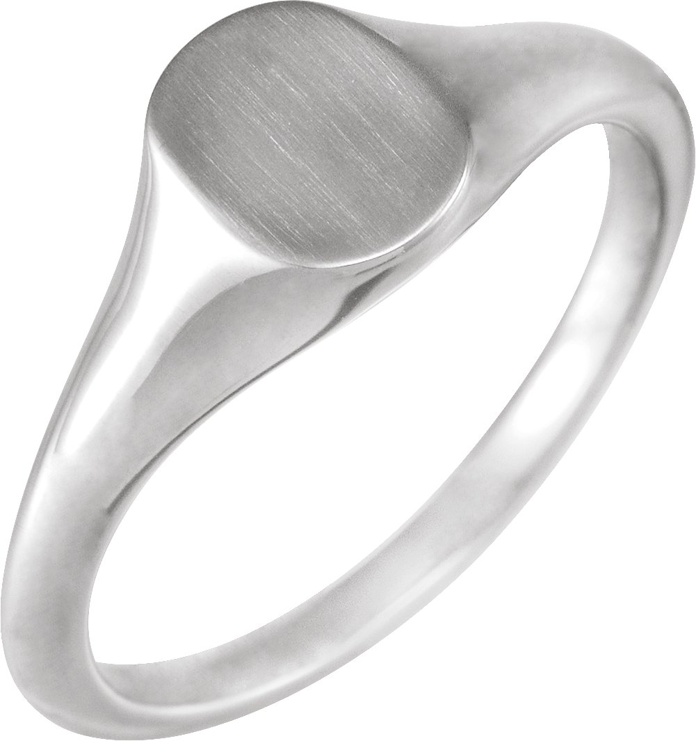 51552 / 14K White / Oval / 8 X 6 Mm / Brush / Polished / Oval Signet Ring
