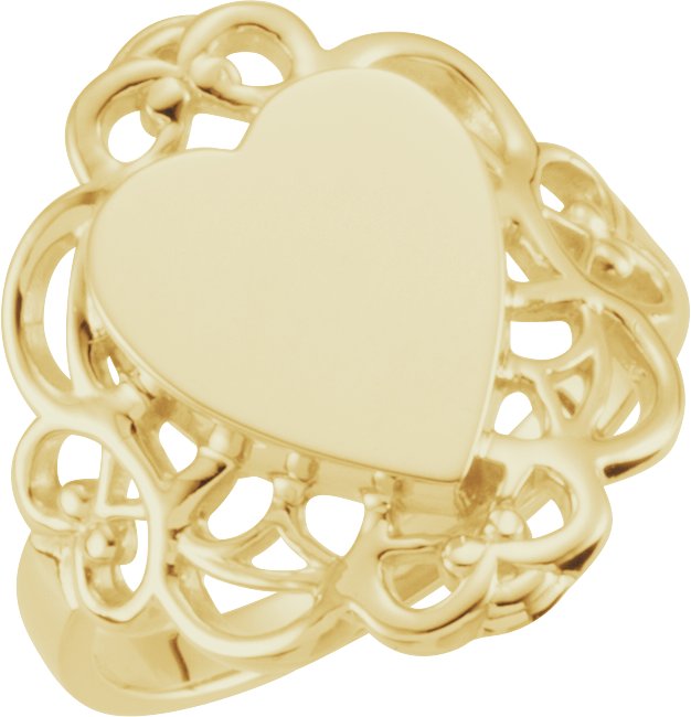 5470 / 14K Yellow / Heart / 20.1 X 18 Mm / Brush Finished / Polished / Signet Ring