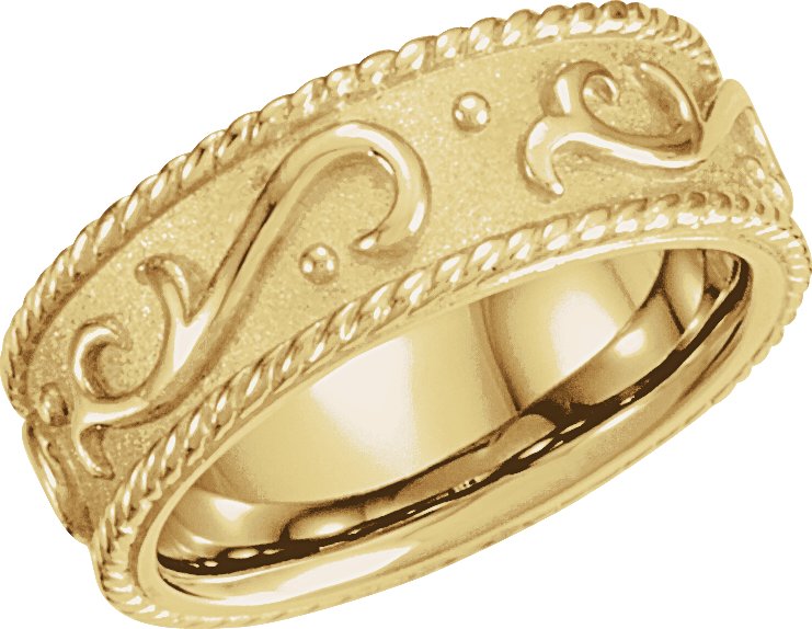 14K Yellow 7.25 mm Scroll Design Band Size 8