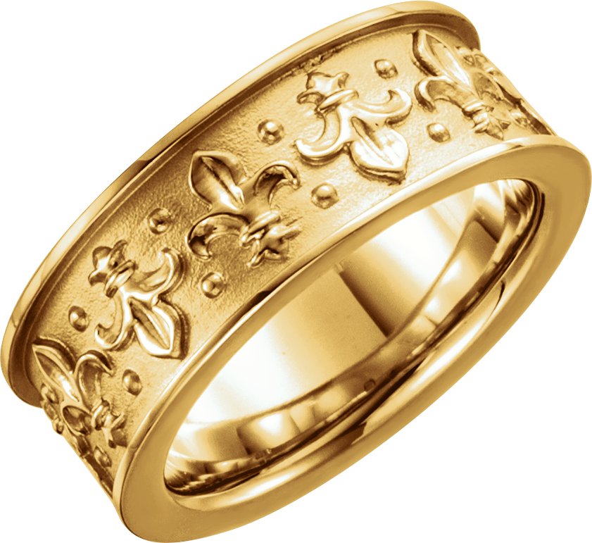 14K Yellow 7.75 mm Fleur-de-lis Band Size 5