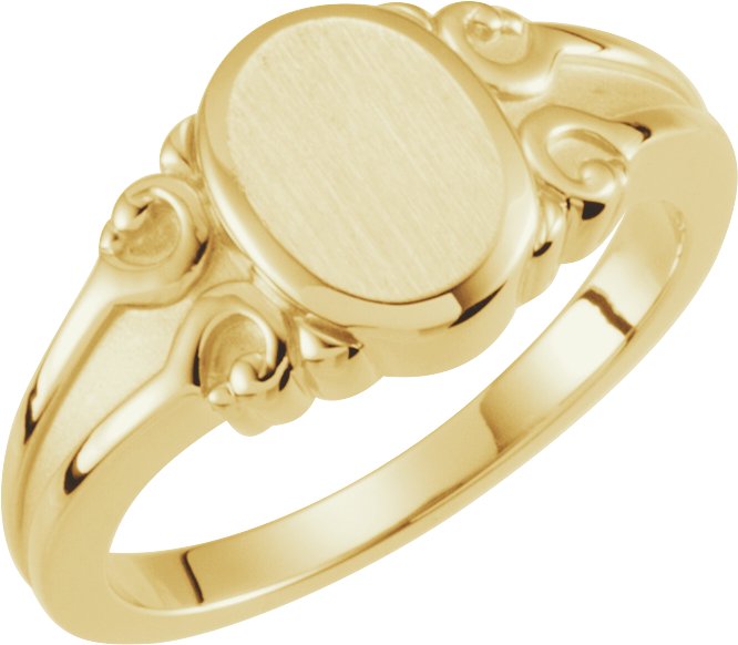 50457 / 14K Yellow / Oval / 9.7 X 8 Mm / Brush / Polished / Signet Ring