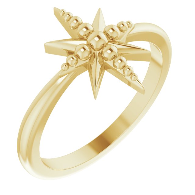 14K Yellow Beaded Star Ring