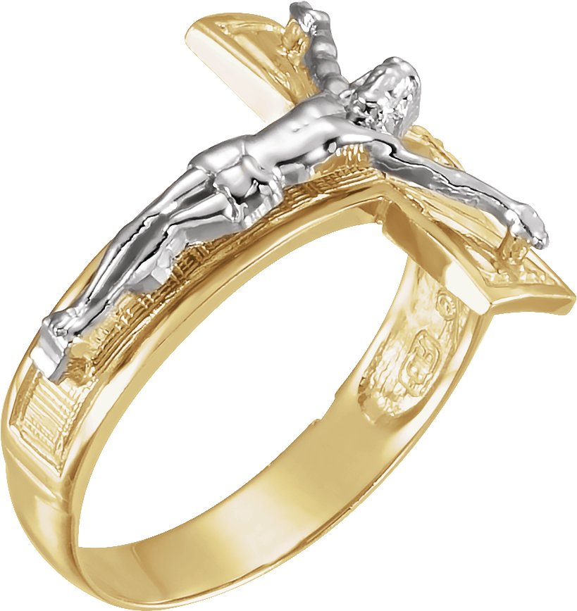 R43001 / 14K Yellow/White / Ring / Polished / Tt Gents Crucifix Ring