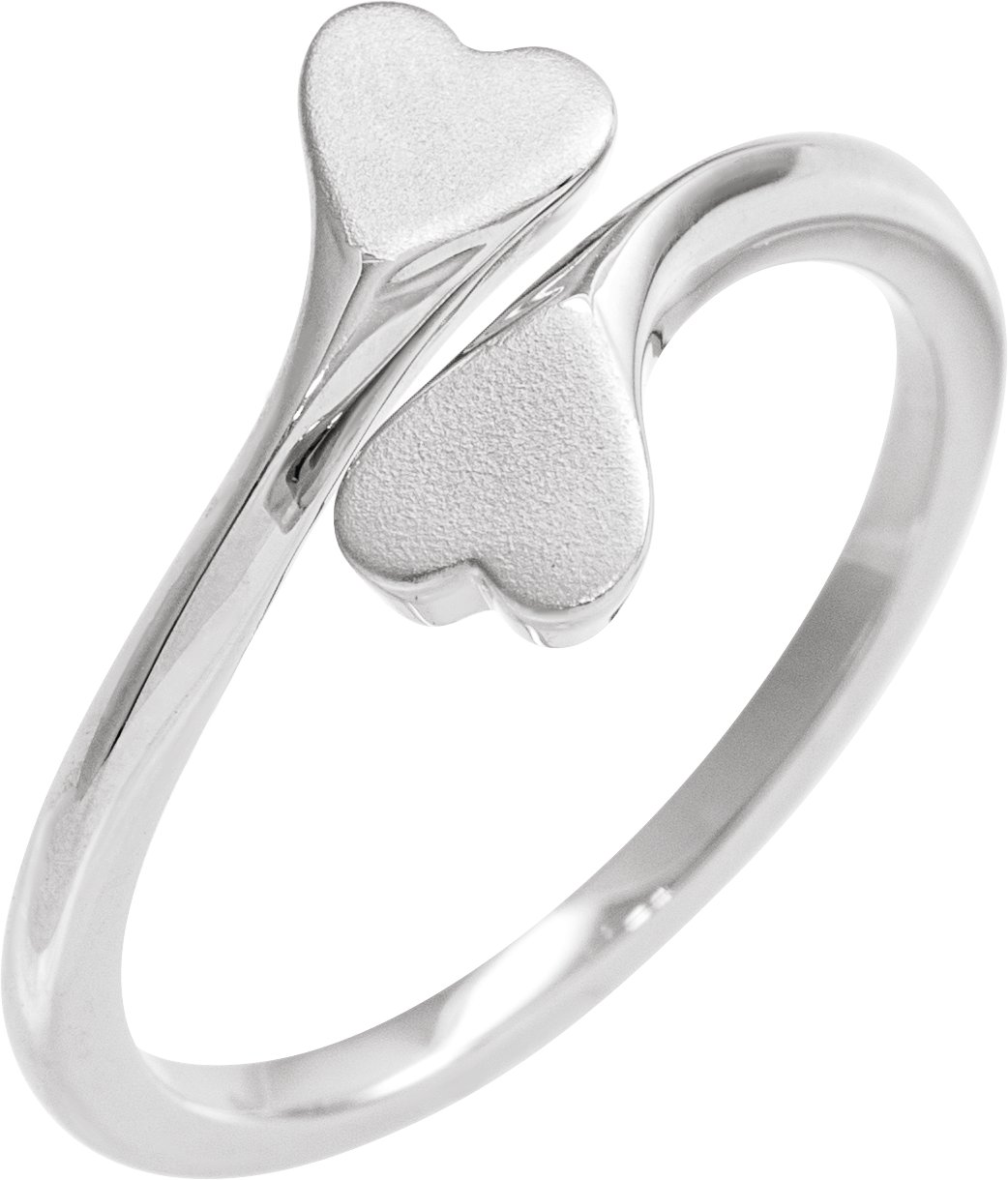 57832 / Ring / Sterling Silver / Polished / Engravable Double Heart Bypass Ring With Bead Blast Finish With Bead Blast Finish