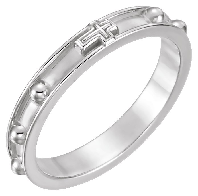 R16604 / Ring / Sterling Silver / 9 / Polished / Rosary Ring With Raised Borders