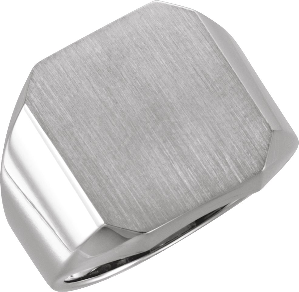 9128 / 10K White / 18 X 16 Mm / Brush / Polished / Signet Ring