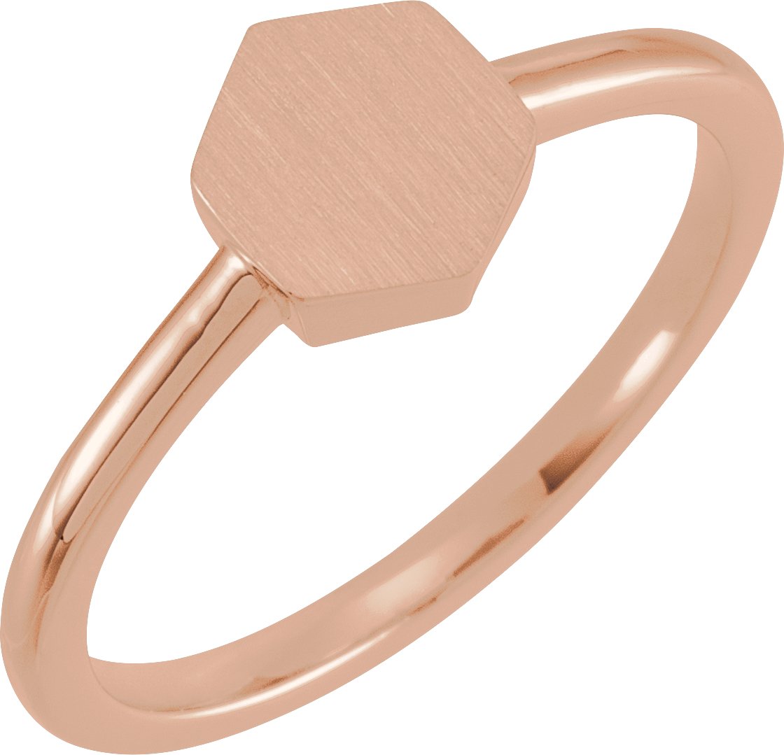 52180 / 14K Rose / Hexagon / 9.5 X 8 Mm / Brush / Polished / Signet Ring