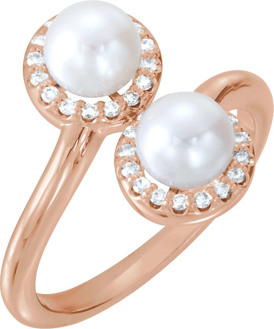 14K Rose Cultured White Freshwater Pearl & 1/6 CTW Natural Diamond Ring
