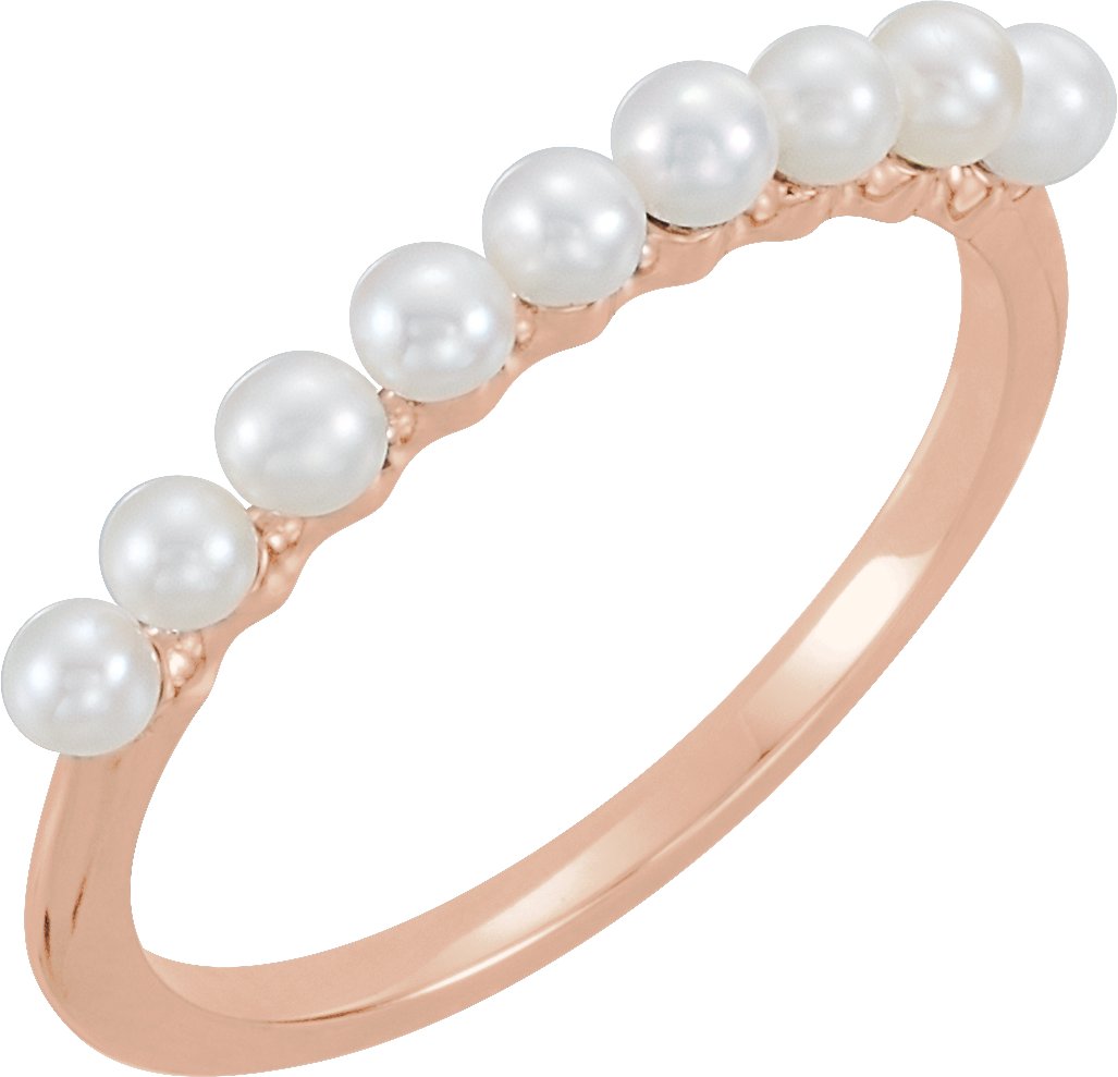 6518 / Ring / Set / 14K Rose / Cultured White Freshwater Pearl / Pearl / 2.5 Mm / Polished / Cultured White Freshwater Pearl Stackable Ring