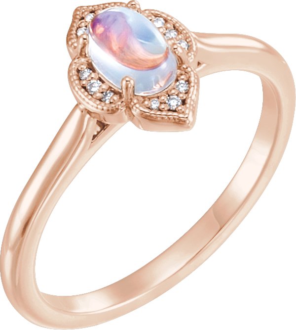 14K Rose Natural Rainbow Moonstone & .03 CTW Natural Diamond Ring