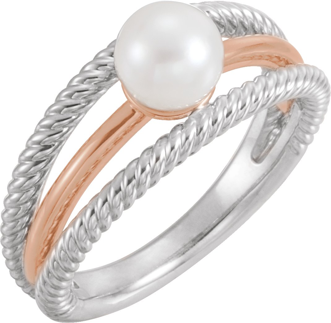 6519 / Set / 14K White/Rose / Polished / Freshwater Cultured Pearl Rope Ring
