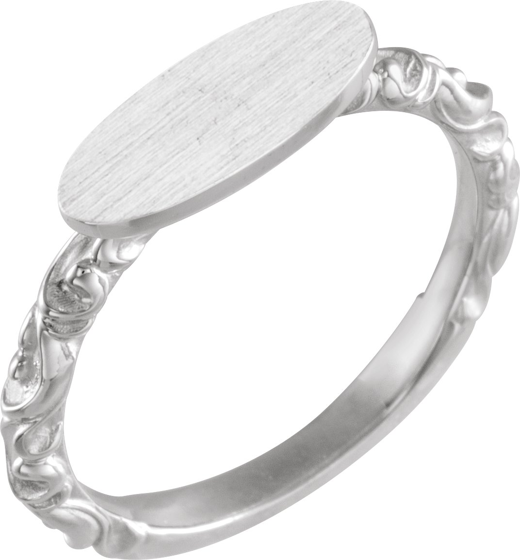 51803 / 14K White / Oval / 13.1 X 5.5 Mm / Brush / Polished / Signet Ring