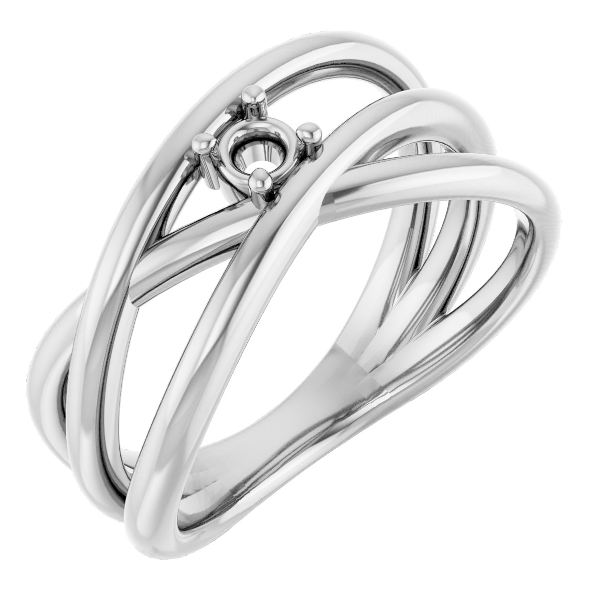 123527 / Ring / Set / 14K White / Natural Diamond / Round / 3.2 Mm / Polished / 1/8 Ctw Natural Diamond Negative Space Ring