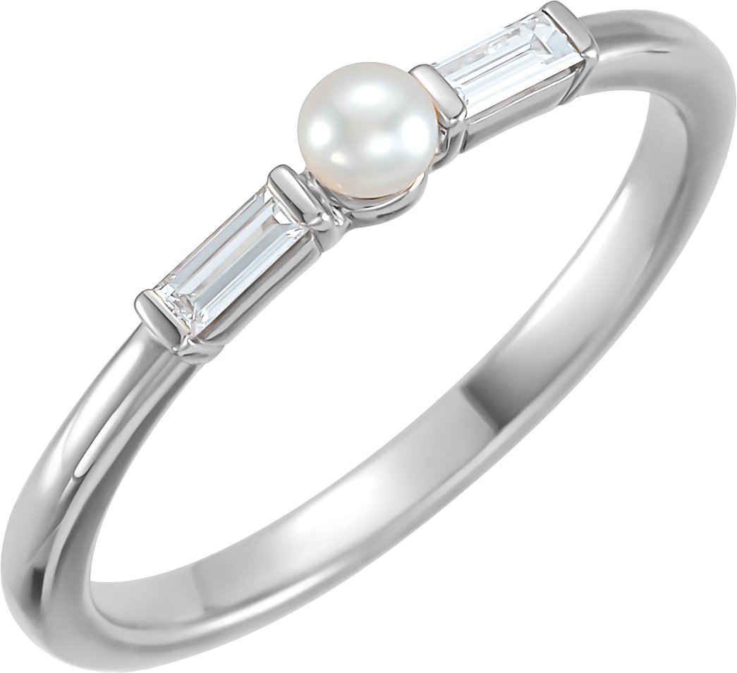 6527 / Ring / Set / Cultured White Seed Pearl / 3Mm / 14K White / Si2-Si3, Ghi / Polished / White Seed Pearl And 1/8 Ctw Diamond Ring