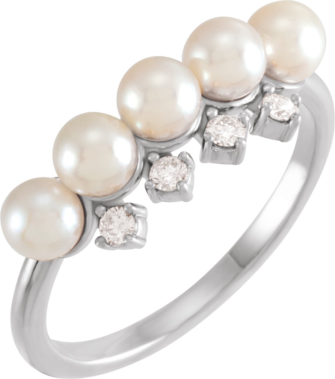 6522 / Ring / Set / 14K White / Cultured White Akoya Pearl / Pearl / 4 Mm / Natural Diamond / Polished / Cultured White Akoya Pearl And 1/8 Ctw Natural Diamond Stackable Ring