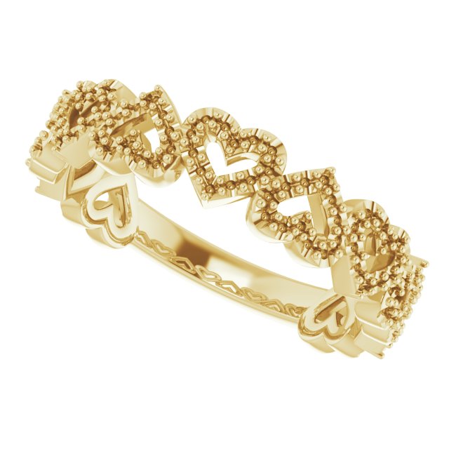 124362 / Ring / Set / 14K Yellow / Natural Diamond / Round / .8 Mm / Polished / 1/3 Ctw Natural Diamond Stackable Heart Ring