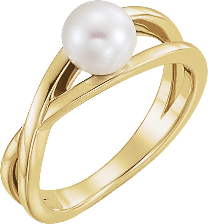 6496 / Ring / Set / 14K Yellow / Cultured White Freshwater Pearl / Pearl / 6.0-6.5 Mm / Polished / Cultured White Freshwater Pearl Ring