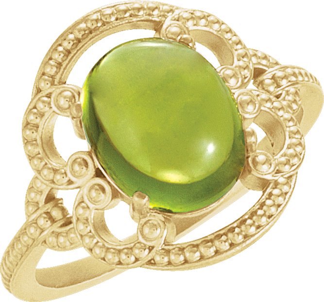71565 / Set / 14K Yellow / Natural Peridot / Oval / 10 X 8 Mm / Polished / Etruscan Peridot Ring