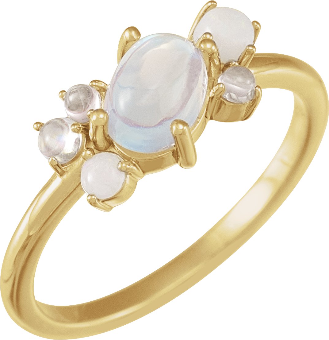 72200 / Ring / Set / 14K Yellow / Natural Rainbow Moonstone / Oval / 7 X 5 Mm / Natural Multi-Gemstone / Polished / Natural Rainbow Moonstone And Multi-Gemstone Scattered Cabochon Ring