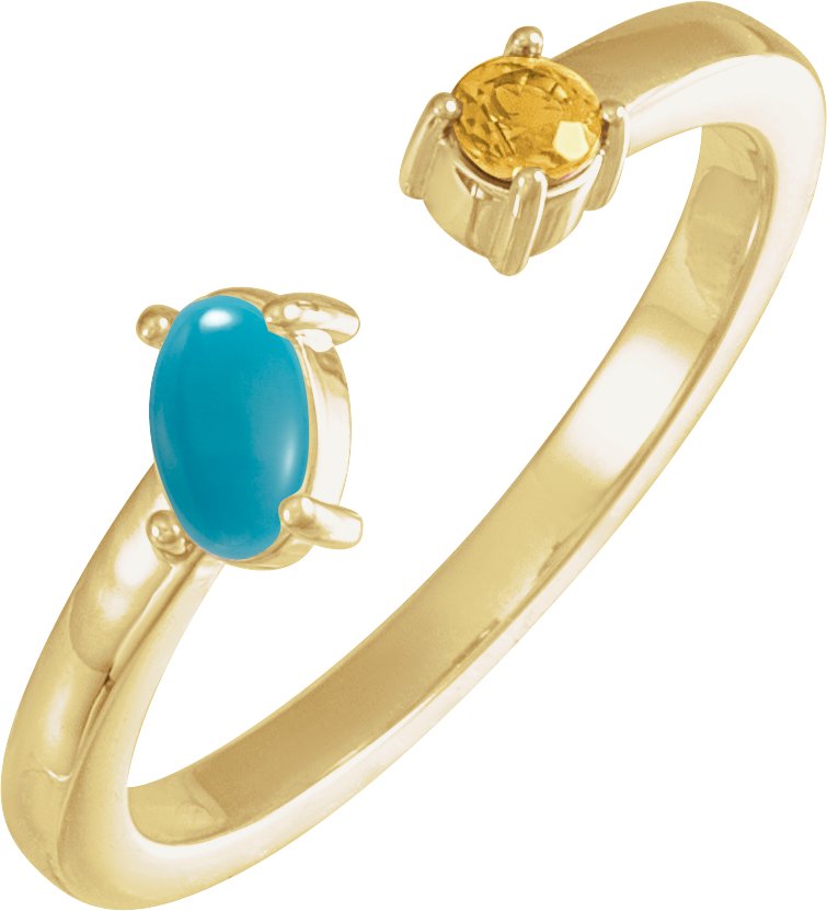 72349 / Ring / Set / 14K Yellow / Natural Turquoise / Oval / 5 X 3 Mm / Natural Citrine / Polished / Natural Turquoise And Natural Citrine 2-Stone Negative Space Ring