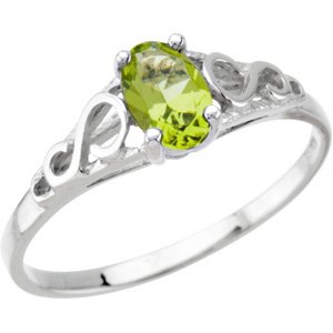19335 / 14K White / August / Gift Box Not Included / Polished / Youth Ring With Imitation Birthstone