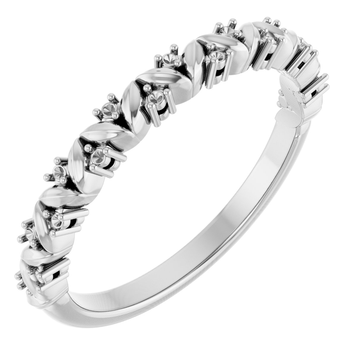 Sterling Silver .07 CTW Diamond Leaf Stackable Ring