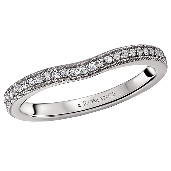 Curved Diamond Wedding Band with Milgrain in 18kt White Gold. (D.1/7 carat total weight)