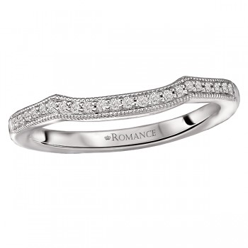 Curved Matching Diamond Wedding Band in 18kt White Gold with Milgrain Detail. (D .09 carat total weight)