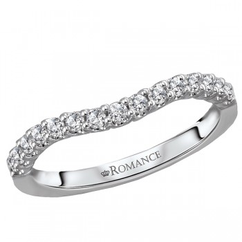 This is a curved wedding band features round brilliant cut diamonds set in 18kt white gold. (D 1/4 carat total weight)