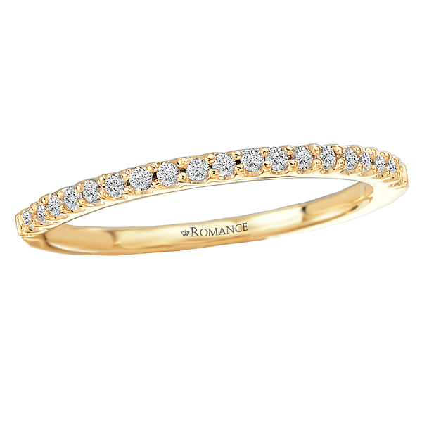 Matching Round Diamond Wedding Band in 18kt Yellow Gold. (D. 1/7 carat total weight).