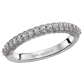 This is a matching wedding band with round faceted diamond and milgrain detail crafted in 18kt white gold. (D 1/4carat total weight)