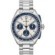On August 2, 1971, a Bulova chronograph was worn on the moon, engineered for the demands of the lunar environment. Now, Bulova returns to the design and updates it with an exclusive high precision quartz movement, continuing its legacy of precision timing with the men's Bulova Lunar Pilot chronograph from the Archive Series. The Lunar Pilot chronograph features the same 43.5mm silver-tone stainless steel case as the original Bulova chronograph. Slim, blue chronograph pushers and a crown featuring the Bulova tuning fork logo are positioned at 3 o'clock. Under the flat sapphire crystal, the six-hand chronograph dial is rendered in a blue-and-silver panda design, with a blue tachymeter ring and retro Bulova name. The slim hands and applied markers offer exceptional legibility and are applied with super luminova for low-light display. The recessed, circular grooved sub-dials include a 1/20 chronograph seconds counter at 3 o'clock, running seconds p hand at 6 o'clock, and 60-minute chronograph counter at 9 o'clock. The Lunar Pilot is powered by Bulova's proprietary high precision quartz movement, resonating at a frequency of 262khz for unparalleled accuracy and allowing a sweeping chronograph hand and running seconds hand. The watch is paired with a matching 3-link silver-tone stainless steel bracelet with a push-button deployant clasp and a fitted leather strap, both of which feature an easy release system for quick changes. A modern interpretation of a historic timepiece, the Bulova Lunar Pilot is the ideal watch for today's explorer.