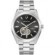 Part of the Surveyor line of Bulova watches, this updated classic automatic watch offers all of the detail and fine quality you would expect in a luxury watch, at an accessible price. The silver-tone stainless steel case and bracelet is paired with a rich black dial with silver-tone accents and an open aperture to view the movement's balance wheel and escapement. The screw-back case is topped with a mineral crystal exhibition window to showcase the automatic movement powering the timepiece. This beautifully detailed, quality timepiece is destined to become a new favorite in any collection.