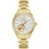 With unequalled refinement and timeless design, this new Bulova ladies' timepiece from the Sutton Collection will elevate your style. The gold-tone stainless steel case is masterfully finished with polishing and brushing, with a domed sapphire crystal for ideal clarity. The stunning mother-of-pearl dial features an engraved motif with polished gold-tone hour markers and hands. Framed by a gold-tone ring, an aperture at 7 o'clock offers a view at the beating heart of the 21-jewel mechanical movement which has a power reserve of 42 hours. Accompanied by a matching gold-tone stainless steel bracelet with a push-button deployant clasp, this new Bulova timepiece is made for those with an eye for style who aren't afraid to make a statement. *Mother-of-pearl colors on dials can vary due to natural variations of the material. Light reflection creates an iridescent effect, causing colors to shift and change, making each dial unique in color and tone.