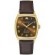Incorporating vintage Bulova designs with the unmistakable elements of legendary performer, Frank Sinatra, the ?Young At Heart' watch features a tonneau shaped gold-tone stainless steel case with gold-tone hands and markers. Frank Sinatra's signature and iconic Fedora Hat are displayed on the rich whiskey color sunray dial. The watch features a Miyota Caliber 8215 21-jewel automatic movement with a 42-hour power reserve and calendar. The exhibition case back showcases the fine movement and features the song title as well as the iconic Fedora Hat, which can also be found etched on the crown. The padded brown leather strap features a deployant buckle and is stamped with ?Young At Heart' along the inside. The watch features a domed sapphire crystal with AR coating and water resistance to 30 meters.