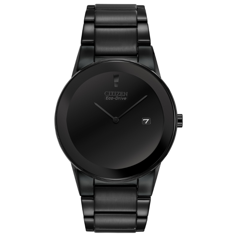 Axiom's refined yet sleek design offers a day-to-night fashion options for the avid trendsetter. This Black Out model is featured in stainless steel with black ion plating, black dial and black accents and the intriguing feature of edge-to-edge glass. Featuring our Eco-Drive technology - powered by light, any light. Never needs a battery. Caliber number J165.