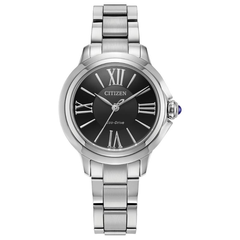 When it comes to elegant watches for women, the Ceci is a striking addition to any collection. Featuring a silver-tone stainless steel design with a case measuring 31.5mm across, its distinct shape is punctuated by a synthetic sapphire-set crown. On the dial, a black display features silver-tone accents, with the slim lines of the Roman numeral indices matching those of the hands. With this watch, you'll never need to worry about replacing a battery - this watch is sustainably powered by any light with our proprietary Citizen Eco-Drive technology. Whether you're looking for a dress watch for special occasions or a beautiful timepiece to wear every day, the Ceci will look stunning on every wrist and elevate your style. Water resistant to 50 meters. Caliber E031.
