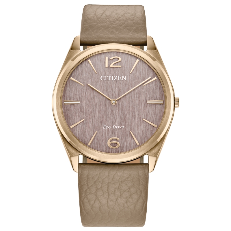Classic lines and a simple silhouette define the newest addition to the Classic collection. This all-purpose dress watch features a versatile rose gold-tone stainless steel 38.4mm case, a two-hand pink dial featuring an entrancing metallic powder aesthetic with rose gold-tone hands and markers, and is secured to the wrist via a grained beige leather strap with buckle closure. The Citizen Suratto collection features a notably defining thin case at 4.71mm, and is sustainably powered by any light with Eco-Drive technology - which never needs a battery. Water resistant to 30 meters. Caliber G872.