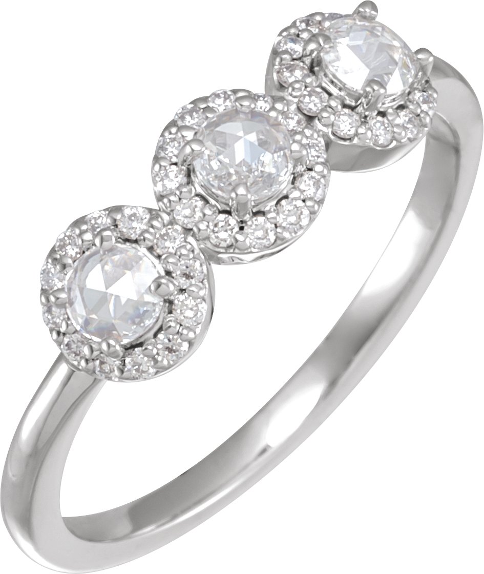 124798 / Anniversary Band / Set / 14K White / Natural Diamond / Round / 3 Mm / Natural Diamond / Polished / 1/3 Ctw Natural Diamond Rose Cut And Faceted Anniversary Band