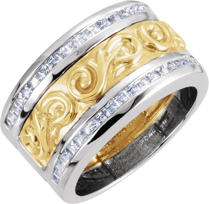 14K White/Yellow 1 CTW Diamond Scroll Anniversary Band