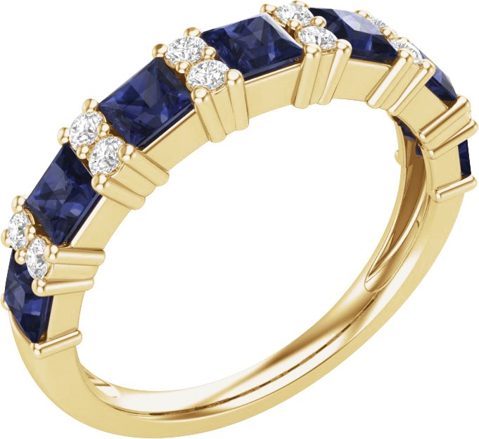 688984 / Anniversary Band / Set / 14K Yellow / Natural Blue Sapphire / Square / 3 X 3 Mm / Natural Diamond / Polished / Natural Blue Sapphire And 1/5 Ctw Natural Diamond Anniversary Band